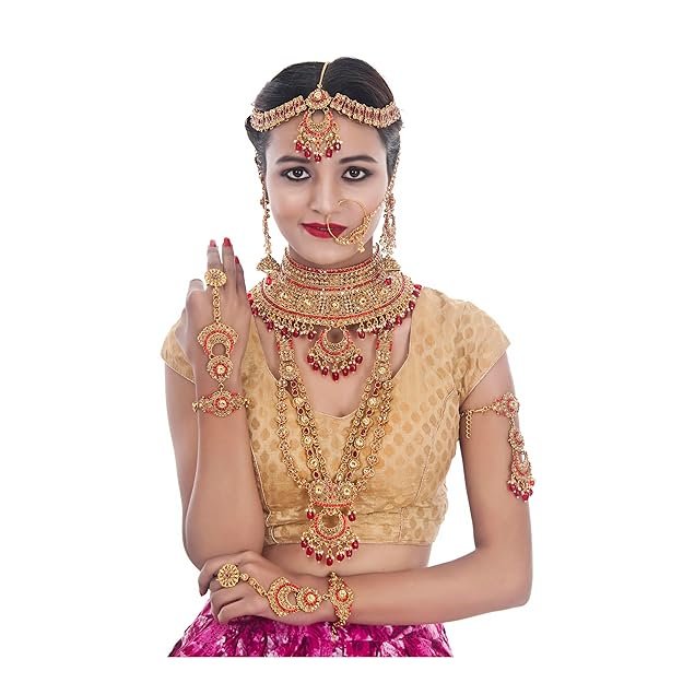 Lucky Jewellery Bridal Dulhan Alloy Gold Plated Jewellery Set