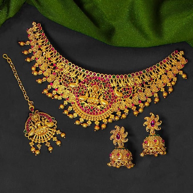 Gold Plated Dulhan Choker Bridal Set with sheeshpatti