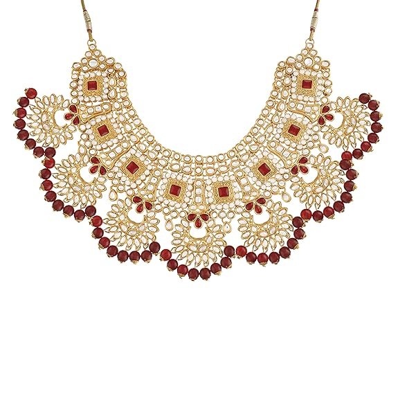 18K Gold Plated Traditional Handcrafted Faux Kundan & Stone Studded Bridal Jewellery Set