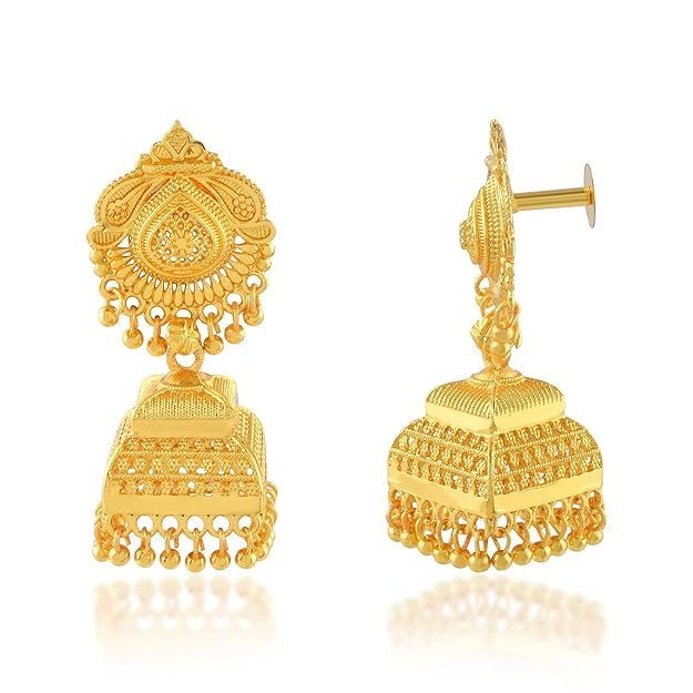 24KT Micron 1 gram Gold Square Umbrella design Traditional Jhumka Earrings